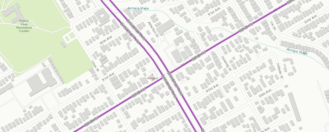 Both Bancroft and 82nd are on the High Injury Network and neighbors say that there is frequent excessive speeding, especially on the extra wide lanes on Bancroft. The Oakland Fire Department had previously requested the extra wide lanes when Bancroft was paved, but we have now seen that such wide lanes provides a venue for excessive speeding. OakDOT could now extend the sidewalk at the crosswalks with bulb-outs and add speed cushions to mitigate the speeding where pedestrians are crossing.